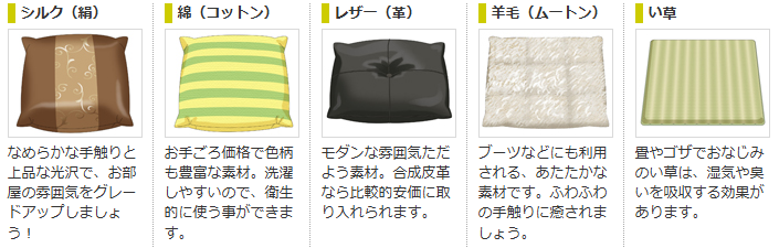 クッションカバーを「素材」で選ぶ