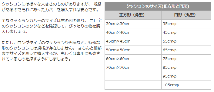 座布団カバーの大きさについて