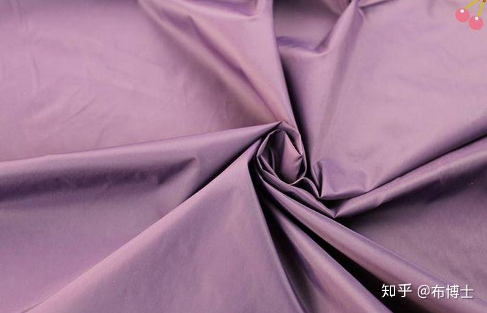 经向锦纶,纬向涤纶,平纹织造。也有全涤的,用一根阳离子丝,产生双色效果。
