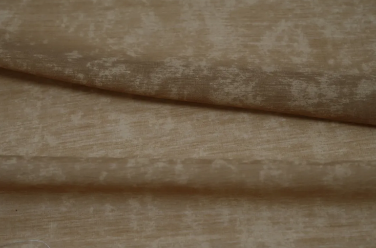 点评:经向采用超细旦单F涤纶曲丝,纬向采用天丝™莱赛尔A100和Naia™混纺纱线,结合平纹变化组织与空筘织造工艺,赋予面料轻盈通透、细腻挺括、微皱且富有光泽,采用活性染料无盐染色技术,将水墨画艺术表现形式与环保可持续理念融合,呈现抽象灵动的水墨图案,适用于衬衫、连衣裙等时尚品类。