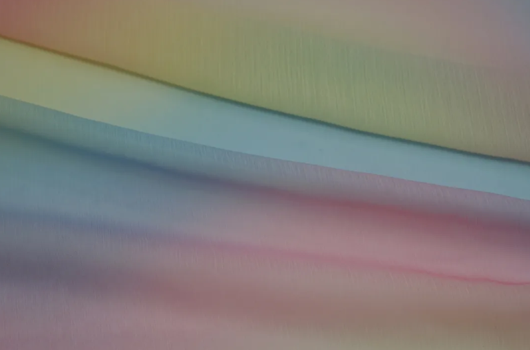 点评:采用100%化学法再生涤纶,原料环保可持续,强捻纱带来细腻起皱肌理,低温染色工艺实现节能减排,高精数码渐变印花工艺赋予面料梦幻粉蜡色调,整体呈现轻盈舒缓的优雅风格,适用于连衣裙、衬衫等时尚品类。